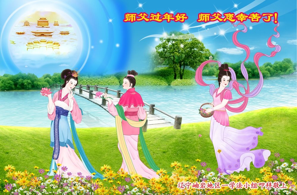 祝您新年快乐! 辽宁鞍山市夫妻大法弟子恭祝慈悲伟大师父过年好!