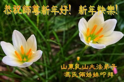 山东省威海市乳山市大法弟子冯氏俩姊妹恭祝师尊新年好!新年快乐!