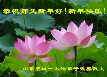 山东省泰安市肥城市一大法弟子夫妻恭祝师父新年好!新年快乐!