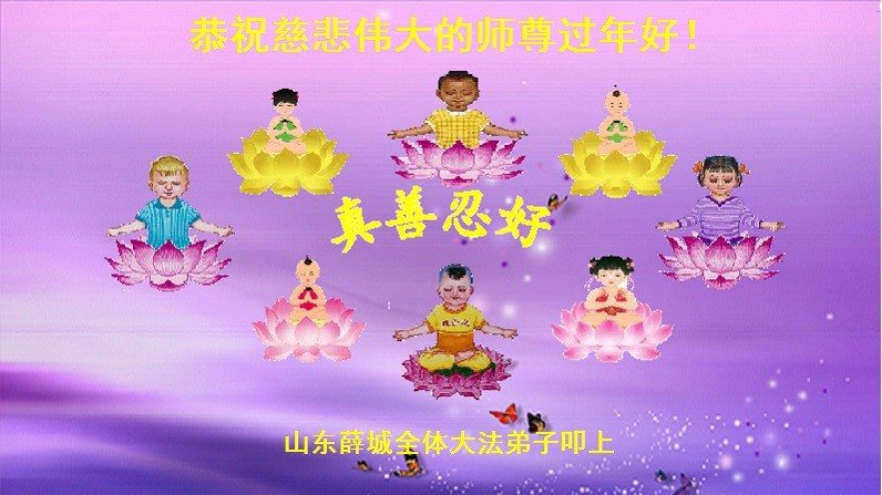 师父过年好!新的一年即将到来,弟子们以法为师,信师信法,认真踏实做好三件事,请师父放心。 山东省蓬莱市一学法小组大法弟子叩拜师尊谢师恩 山东薛城大法弟子给师尊拜年!恭祝师父过年好!