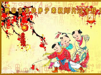 师父过年好! 多年以来,你广传弘法、苦度众生,为弟子们操尽了心。在新的一年里,弟子会更加苦心修炼、多救人、兑现自己的誓约、让师父多一份欣慰、少一份辛劳,能圆满跟师父回家。 此致敬礼 鞍山一大法弟子 辽宁省鞍山大法弟子恭祝师父过年好!