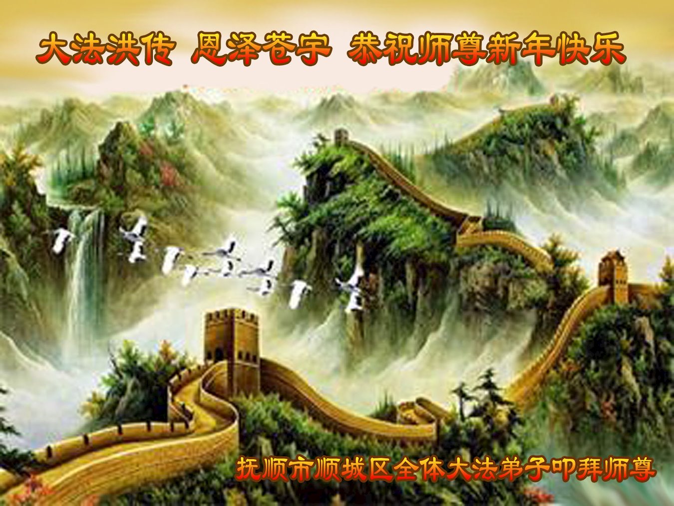 辽宁省抚顺市清原县20位大法弟子恭祝师尊过年好! 辽宁省抚顺市清原县6位大法弟子及30位家属恭祝师尊过年好! 辽宁省抚顺市顺城区全体大法弟子恭祝慈悲伟大的师尊新年快乐!