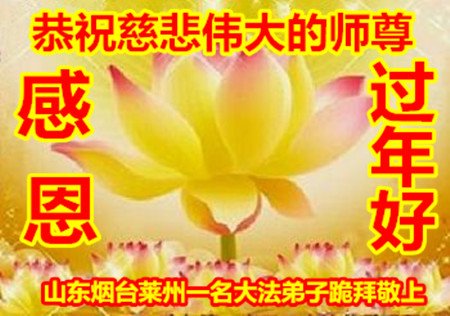 山东烟台莱州一名大法弟子恭祝慈悲伟大的师尊过年好!