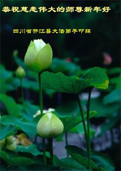 修炼是您赐予我们的荣耀,迫害中我们铭记自己的使命,我们知道救人如救火,我们会在精進实修中不断的更加纯净自己,用更加慈悲纯净的力量去救更多的人。谢谢师尊!合十! 四川省达州市开江县大法弟子恭祝慈悲伟大的师尊新年快乐!
