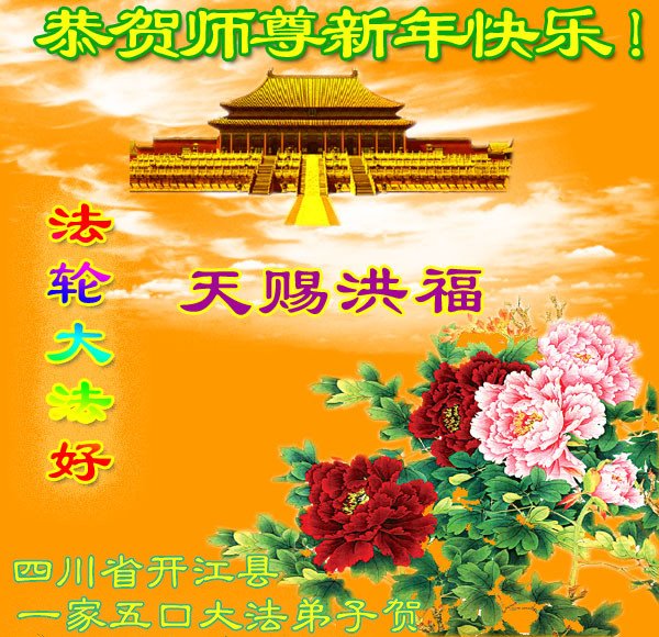 四川省达州市开江县一家五口大法弟子恭祝师尊新年快乐!