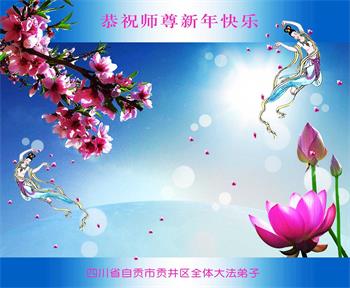 四川省自贡市全体大法弟子恭祝慈悲伟大的师尊新年快乐!