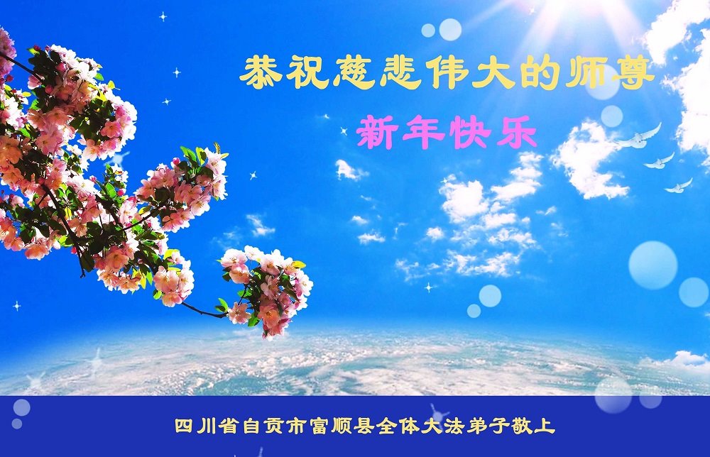 四川省自贡市富顺县全体大法弟子恭祝慈悲伟大的师尊新年快乐!