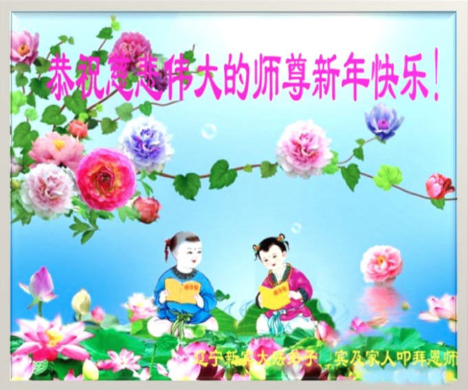 辽宁新宾一大法弟子及家人恭祝慈悲伟大的师尊新年快乐!