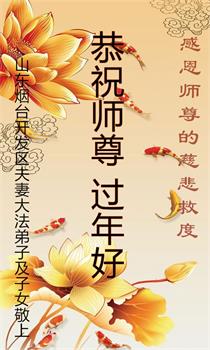 慈悲伟大的师父过年好!慈悲的师父时时保护着弟子、保护着弟子,为弟子操尽了心,同时又为弟子承受了那么多,弟子感恩师父,谢谢师父!弟子要多学法、学好法,做好三件事,助师正法,不辜负师父的慈悲苦度,跟师父回家。 山东烟台市招远市大法弟子恭祝师父过年好!