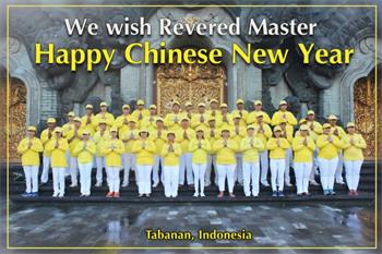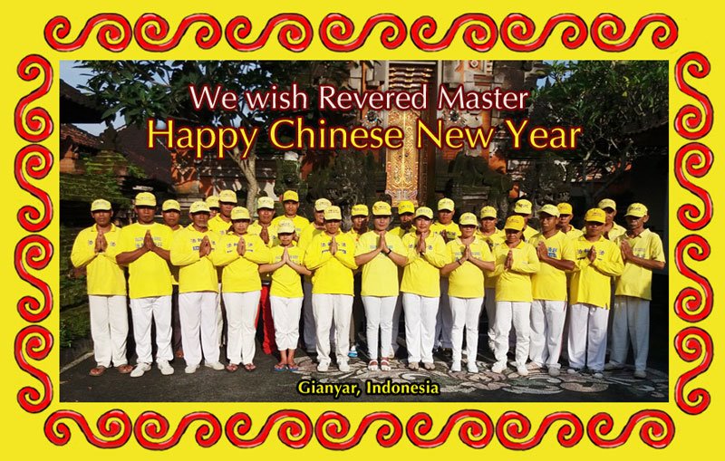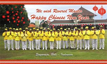 印度尼西亚巴厘岛新加拉惹大法弟子恭祝崇敬的师尊中国新年快乐!
