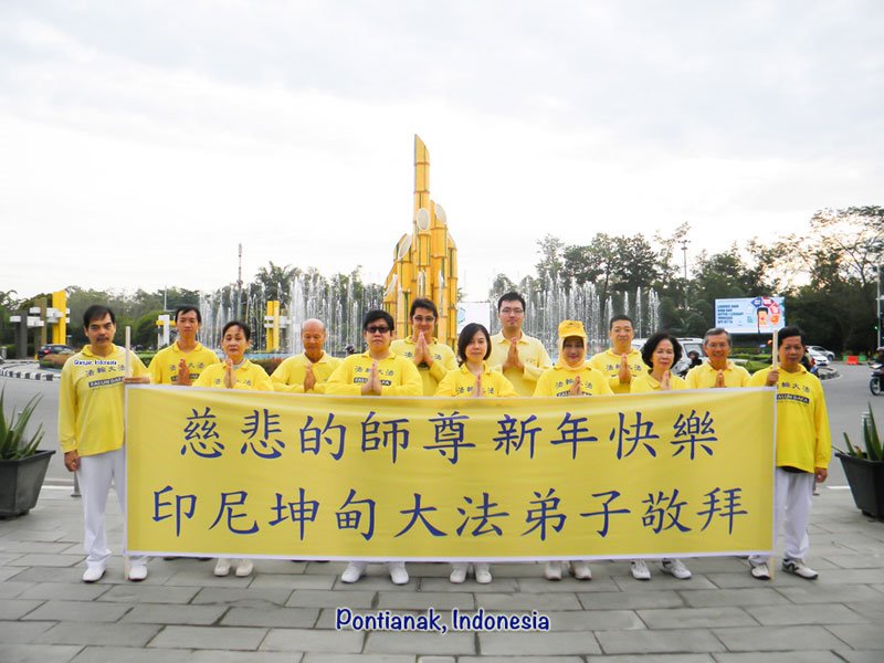 印度尼西亚坤甸大法弟子恭祝慈悲的师尊新年快乐!