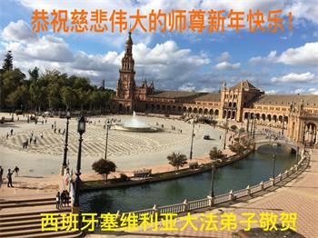 西班牙塞维利亚大法弟子恭祝慈悲伟大的师尊新年好!