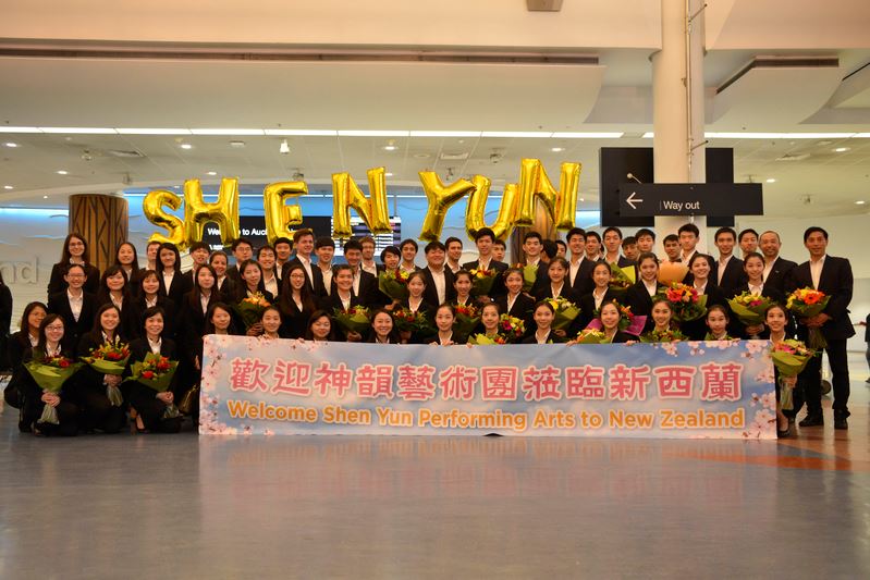图2:二零一八年二月十四日,美国神韵国际艺术团在结束了澳洲悉尼五天七场的演出后,马上马不停蹄,又飞抵新西兰奥克兰国际机场,受到当地粉丝的热烈欢迎。 |