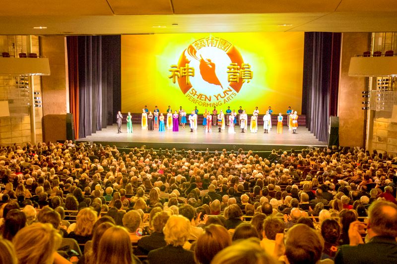 她赞叹道:“神韵启迪人的心灵!我喜爱晚会的一切,特别欣赏男演员,如此的英武,我也喜爱这些女演员,是那样的华贵优雅。” “神韵乐团非常出色,太优秀了,为舞蹈增色,服装和天幕场景也非同凡响,所有一切都精致美丽。”她不停赞美神韵:“晚会通过乐团,天幕,服装和故事情节,全方位完整地描绘了一个中国,遗憾的是我却一无所知,真高兴他们今天来这里,和我们分享他们的文化和历史。” 她表示会告诉同僚别错过观看神韵:“我会鼓励他们来看神韵”。 神韵蕴含宏大力量 获奖音乐DJ泪眼看神韵 罗德岛是美国最小的州,首府Providence英文原意是“神佑之地”。二月十日和十一日,神韵世界艺术团在美国罗德岛州府普罗维登斯表演艺术中心(Providence Performing Arts Center)上演了二场演出,票房均大爆满。获奖唱片骑师,大波士顿地区著名音乐人苏珊娜•洛克伍德(Suzanne Lockwood)观看演出时泪流不止。 她说:“神韵整体上传递希望和爱。我们都经历过很多磨难,事物的两面性,我们看到邪恶和善良,非常感人,看神韵大多时候我都在落泪。”  图9:神韵世界艺术团二月十一日在罗德岛州普罗维登斯表演艺术中心(Providence Performing Arts Center, PPAC)的演出结束后,许多观众起立长时间鼓掌,向神韵艺术家们致谢。 |