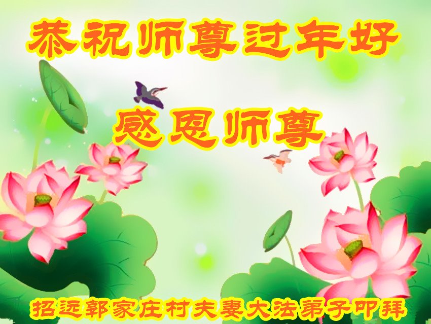 师父您辛苦了! 我们老俩口都有幸得到了高德大法—法轮大法,修大法后我们身心受益很大,我们无比感恩师父,感恩大法。在新的一年里,我们必将会好好修炼,抓紧时间多讲真相,多救人。不辜负师父对我们的慈悲苦度。 吉林省柳河县农村一个三人学法小组恭祝师尊过年好!