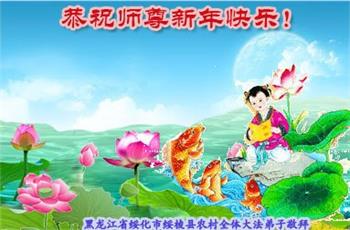 师父好!师父辛苦了!在师父的慈悲看护下,我们凌海市农村大法弟子坚定的走在正法路上。时间的延续,整体的提高,共同清除干扰,解体邪灵,救度众生,兑现誓约,全是师父和大法的威德。再一次全体农村大法弟子恭祝师父新年快乐! 曹妃甸区农村大法弟子恭祝师尊新年快乐!