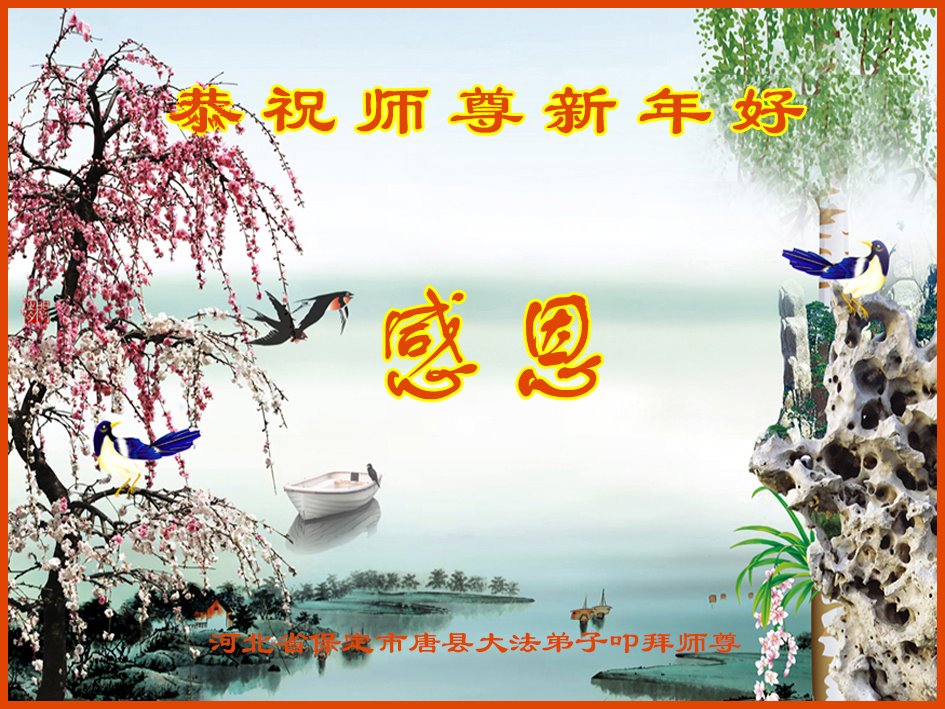 回首二十多年的修炼历程,每时每刻都在师尊的慈悲保护中,千言万语、用尽人类的任何语言都无法表达对师尊的感恩。师尊您好!师尊您辛苦了! 天津武清某乡村学法小组大法弟子祝师尊新年快乐!