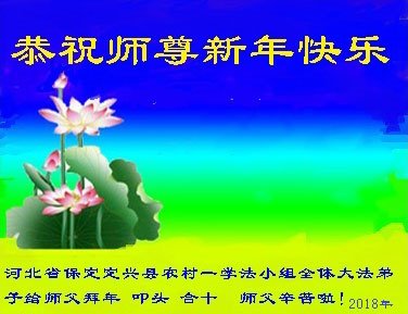 慈悲伟大的恩师您辛苦了!在戊戌年即将到来之前,山西省平定县巨城镇一乡村学法小组全体大法弟子及家人向尊敬的师父致以最最崇高的敬意!一切的一切都无以言表,唯有坚信师父、坚信大法象雄狮般勇猛精進,努力做好三件事,兑现史前来世的大愿,助师正法,回到属于自己的真正的家园。法轮大法好!真善忍好!弟子跪拜师父!再次向师父问好!合十 河北省沧州市河间市乡村大法弟子恭祝师尊新年快乐!