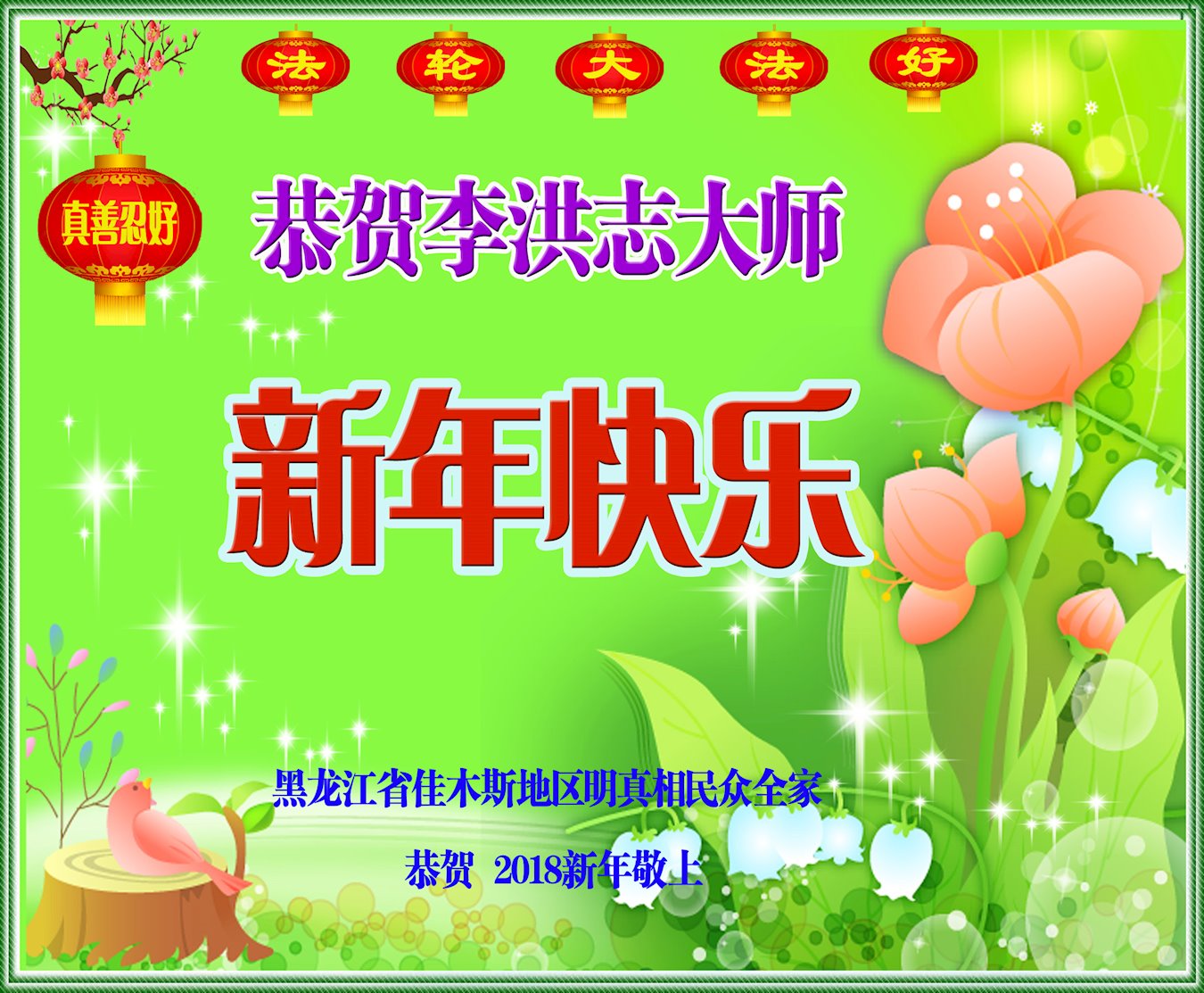 黑龙江省佳木斯地区明真相民众全家恭贺李洪志大师新年快乐!