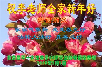 北京昌平一大法弟子80岁老母亲恭祝李老师及全家新年好!