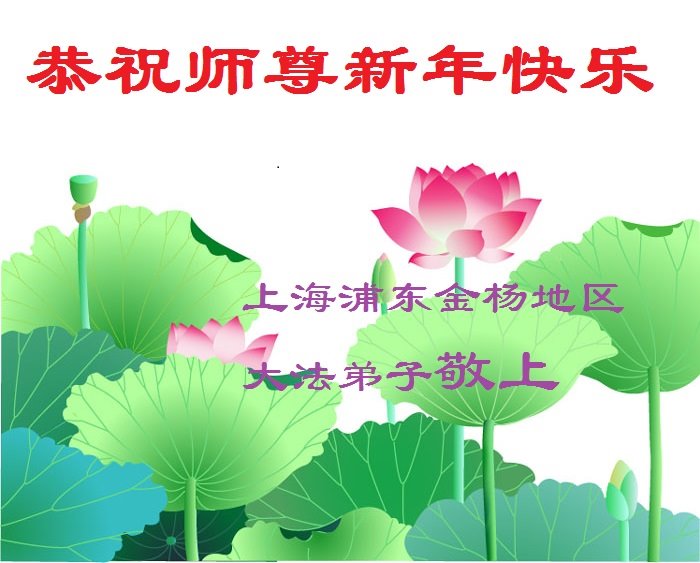 一年又一年,在师尊无微不至的慈悲保护下又走过了看似平稳但却充满跌宕的一年。弟子们深知救人急,在新的一年里,我们一定牢记使命,更加精進的做好师尊交代的三件事,助师世间行,让更多的众生明白真相,给自己选择一个美好的未来。 在新年来临之际,上海外企全体大法弟子恭祝慈悲伟大的师尊新年快乐!我们期盼师尊早日回故里。 弟子叩拜 上海外企全体大法弟子 上海浦东金杨地区大法弟子恭祝师尊新年快乐!