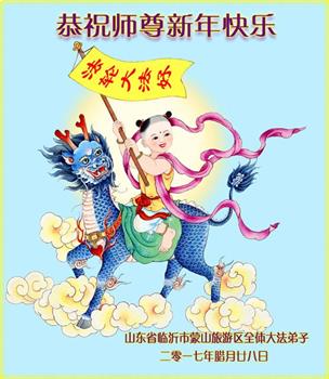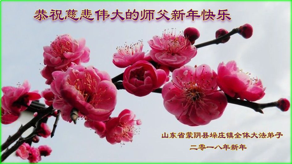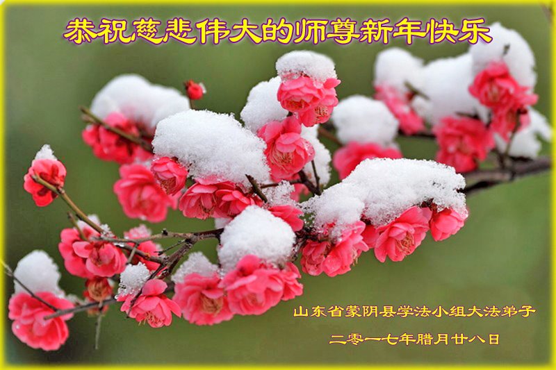 山东省临沭县全体大法弟子及在狱中和流离失所的大法弟子恭祝师父新年好!一定努力做好三件事,救度更多众生。 山东省临沂市蒙阴县学法小组大法弟子恭祝慈悲伟大的师尊新年快乐!