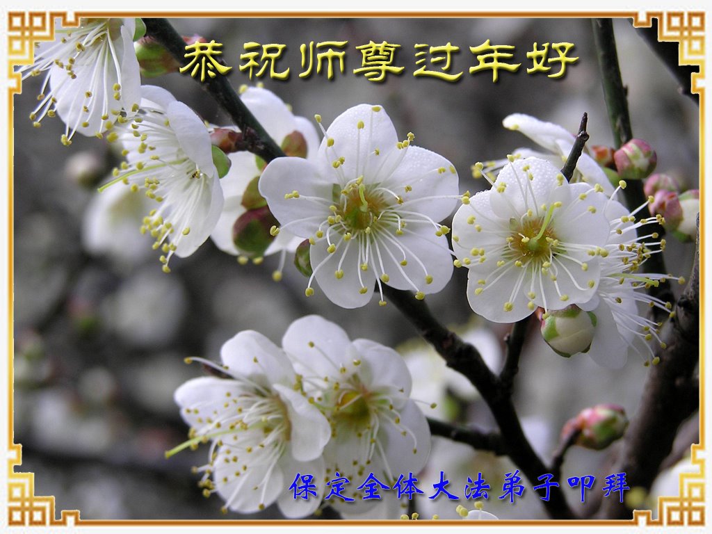 尊敬的师父 过年好! 在紧张与忙碌中,新的一年又来了,感觉过的好快。弟子没做什么事,总感到时间不够用,弟子会在新的一年更精進,在此,弟子携全家借明慧一角恭祝师尊新年快乐!感谢师尊洪恩浩荡! 保定市涞源县大法弟子 河北保定望都大法弟子恭祝慈悲伟大的师尊过年好!