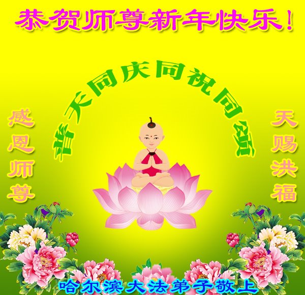 感恩师尊!谢谢师尊! 黑龙江省哈尔滨一全家大法弟子恭祝慈悲伟大的师父新年快乐!