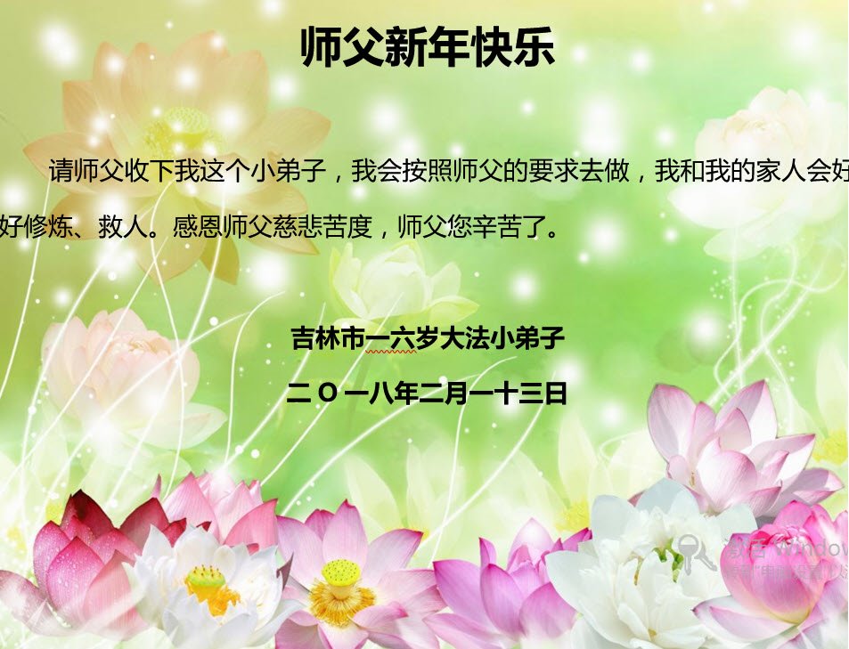师尊辛苦了!谢谢师尊的慈悲苦度! 吉林省吉林市蛟河市大法小弟子祝:师尊新年快乐!