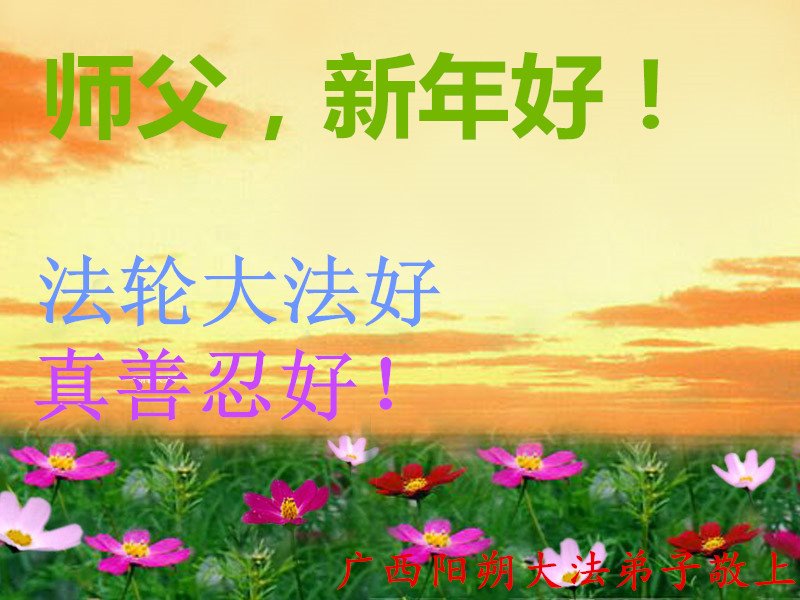 慈悲伟大的李师父新年好!为救众生您辛苦了!愿更多的世人能得到大法的救度,法轮大法好!真善忍好! 广西玉林市青年大法弟子祝师父新年快乐!