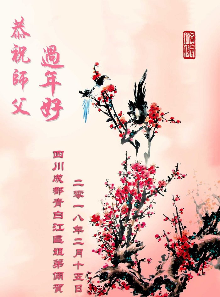 【明慧网二零一八年二月十六日】 四川省成都市郫都区大法弟子恭祝慈悲伟大的师尊新年快乐!
