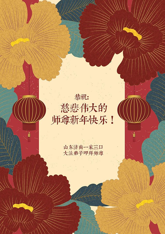 在此新春佳节到来之际,给师尊拜年了!师尊放心,我们一定做好三件事,不辜负您的慈悲苦度,更加精進,跟师尊回家。 山东省济南市一家三口大法弟子恭祝师尊新年快乐!叩谢师恩!