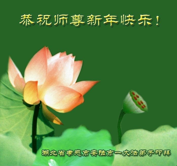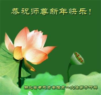湖北省武汉市大法弟子恭祝慈悲、伟大的师尊:新年快乐!