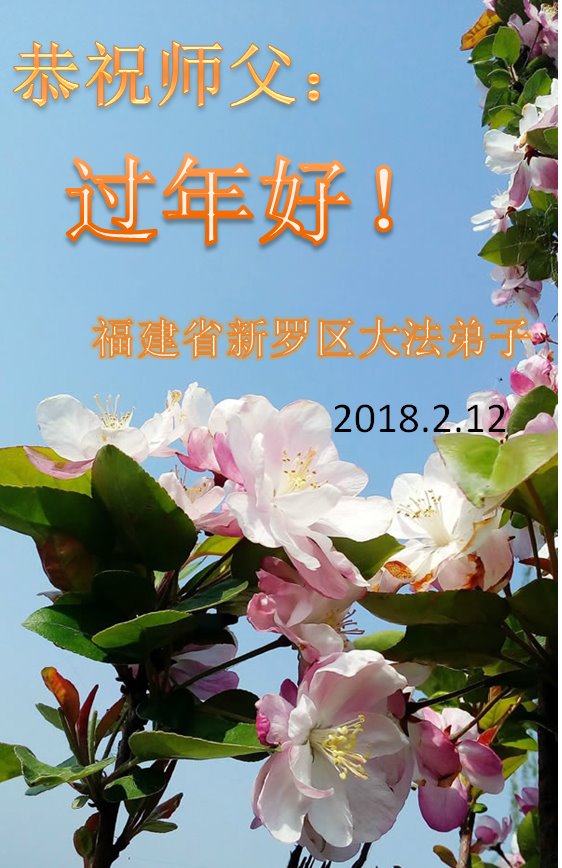 师父,新年好!谢谢您!是您一路看护着我们,使我们有机会从十恶毒世中走出人,使我们有这万古机缘修炼宇宙大法,成为走在神路上的修炼人!我们期盼着师父早日回大陆!谢谢您! 福建省宁德三人学法小组大法弟子恭祝慈悲伟大的师父新年快乐!
