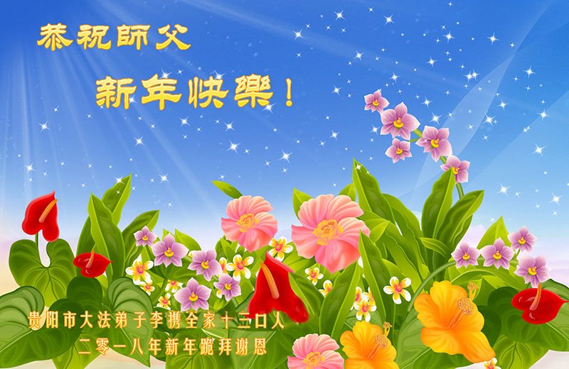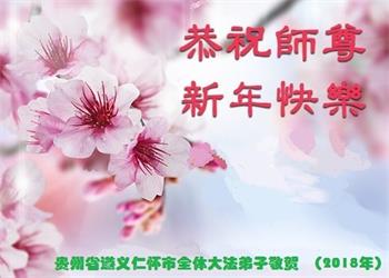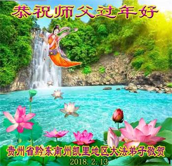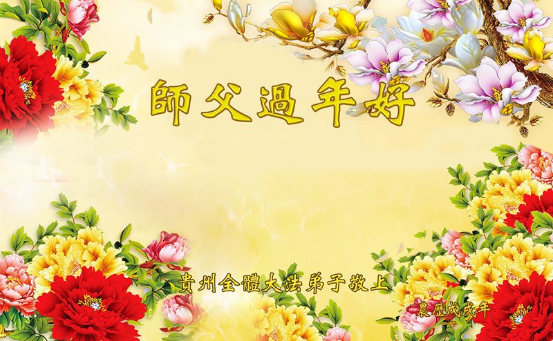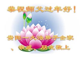 师父: 师父过年好!弟子们恭祝师尊新年快乐! 贵州省黔东南苗族侗族自治州凯里地区全体大法弟子敬贺 贵州省贵阳一大法弟子全家、亲戚、朋友恭祝师父过年好!