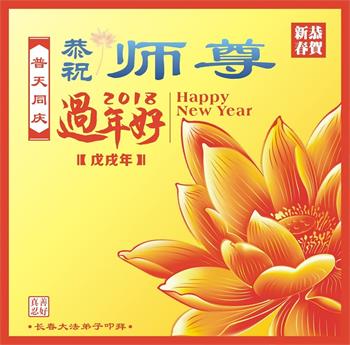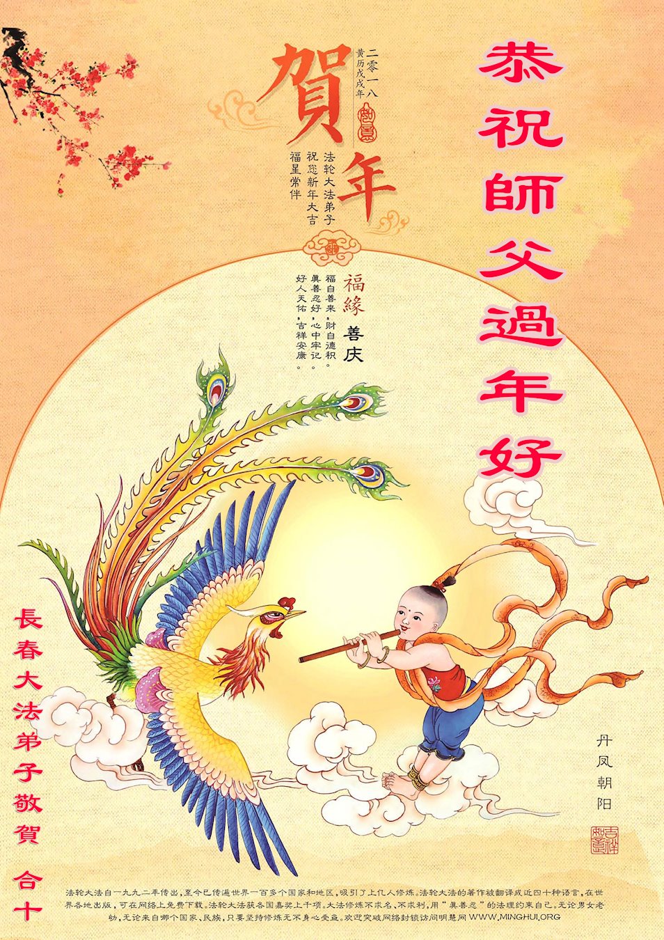 回顾匆匆而过的2017年,有成长,有遗憾,更感到正法时间的紧迫。珍惜余下的时光,更快的提高自己,救度更多的世人,对得起大法弟子的称号和荣誉,我们会全力以赴,在新的一年向师尊交上一份满意的答卷! 祝慈悲伟大的师父新年快乐! 长春大法弟子2018中国传统新年敬贺! 吉林省长春两家大法弟子及家人叩拜师尊新年好!