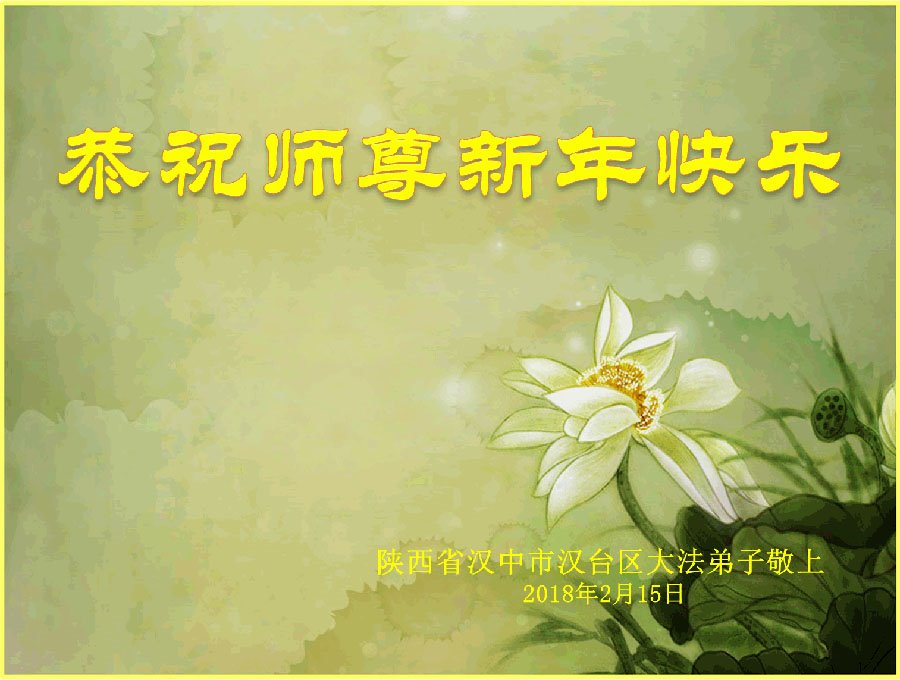 师尊您辛苦了!在新年到来之际,宝鸡大法弟子恭祝师尊新年好!我们一定按照师尊的要求做好三件事,多学法、学好法;向内找,向内修,真正的放下自我,达到无私无我,先他后我的境界;多讲真相多救人,圆满随师还!叩首跪拜恩师! 陕西榆林大法弟子祝慈悲伟大的师尊新年快乐!