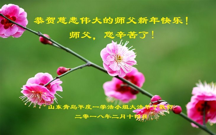 我们全家人恭祝慈悲伟大的师尊过年好!叩谢师尊慈悲苦度,弟子唯有精進实修,才能报答师恩,做好三件事,跟师尊回家。 青岛平度大法弟子 2018年2月14日 山东省青岛一青年大法弟子恭祝师父新年好!