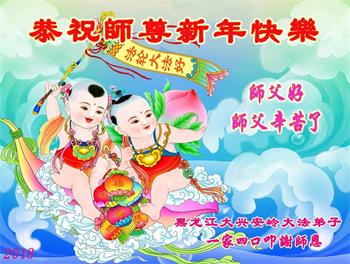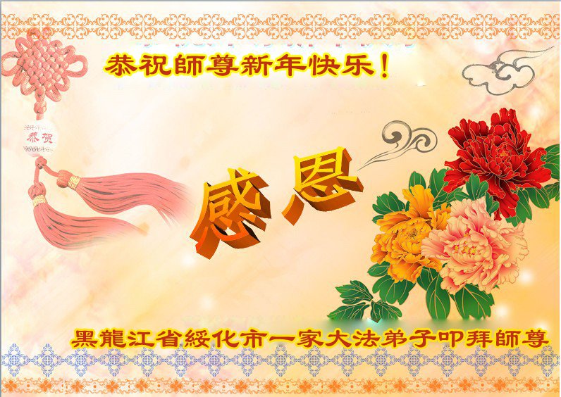 师父好! 我是大兴安岭的大法弟子,曾在马三家黑窝被迫害过,现在身体完全恢复,而且很健康,谢谢恩师慈悲苦度!一定做好三件事,修好自己,我们一家四口恭祝师父新年快乐! 黑龙江省绥化大法弟子恭祝师父新年好!