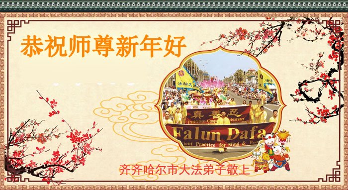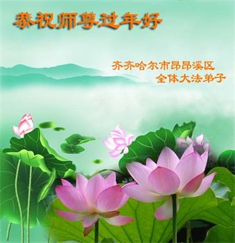 黑龙江省齐齐哈尔两大法弟子恭祝师尊新年快乐!