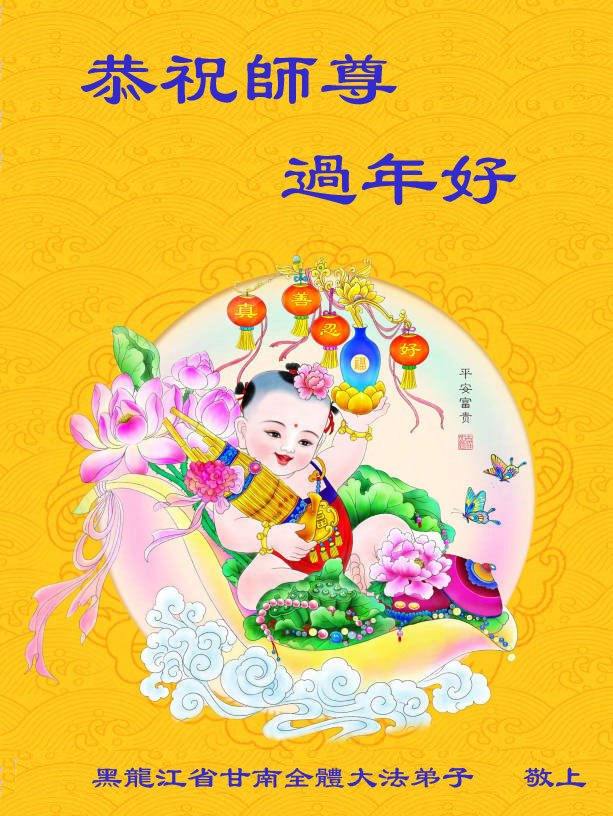 师父辛苦了!师父过年好!齐市大法弟子正在找回修炼如初的状态,而且我们会越来越成熟理智,不等不靠,做好每个人应该做好的三件事,心都在法上自然就会形成整体,请师父放心,我们会精進精進再精進! 黑龙江省齐齐哈尔市甘南县大法弟子恭祝师尊过年好!
