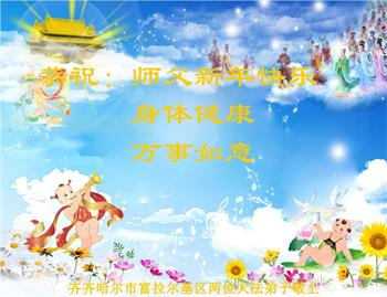 黑龙江齐齐哈尔市两位大法弟子恭祝师父新年快乐!
