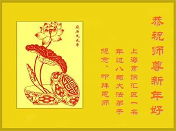 谢谢师父多年来的一直呵护,才使弟子们能够走到今天。谢谢师父救度众生。使众生有了美好的今天。弟子一定谨记师父的教诲,做好三件事。助师正法,救度更多的众生。 上海大法弟子恭祝师尊新年快乐!