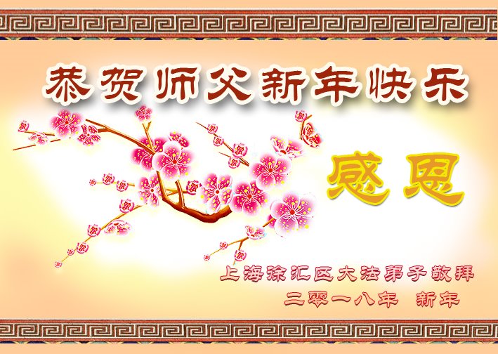 在二零一八年中国新年来临之际,恭祝我们伟大的师尊新春快乐!无限感恩伟大师尊的保护和慈悲苦度! 我们一定珍惜师尊用巨大的承受为众生延续来时间,兑现自己的誓约,助师正法坚修大法永随师! 真、善、忍好!法轮大法好! 上海二大法弟子 2018-2-7 上海大法弟子恭祝师尊新年快乐!