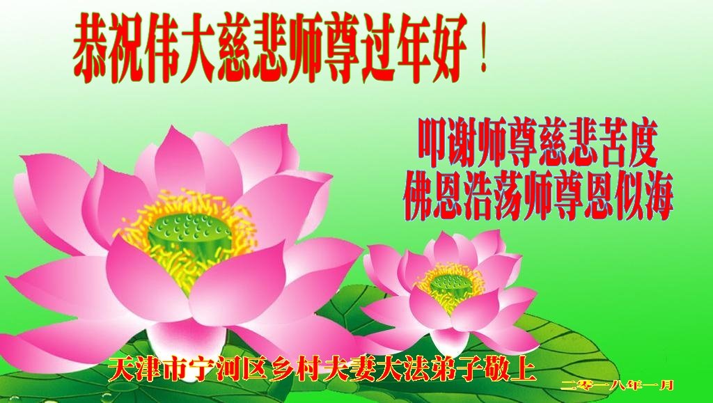 在此新年到来之际,吉林省吉林市昌邑区农村一资料点及全体大法弟子恭祝慈悲伟大师尊新年快乐!无法用人类的语言来感恩师尊的洪大慈悲与救度,只有努力的做好三件事,排除邪恶干扰,随师正法,救度众生。磕谢师尊。 天津市宁河区乡村大法弟子恭祝师尊过年好!