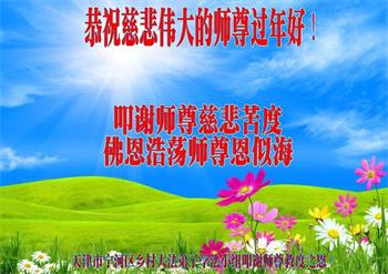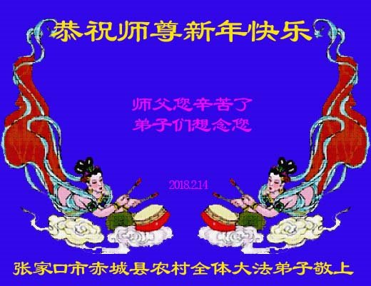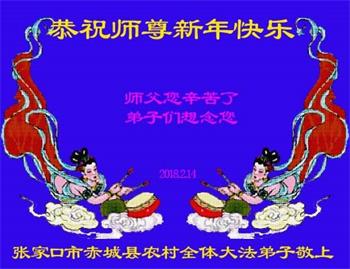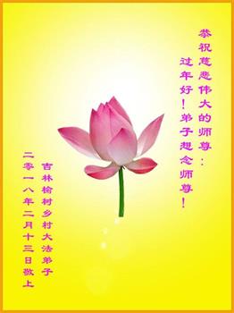 伟大的师尊过年好!我代表家人向师父问好,祝师父新年快乐! 青岛平度一个农村大法弟子 吉林省吉林市昌邑区农村一资料点及全体大法弟子恭祝慈悲伟大师尊新年快乐!