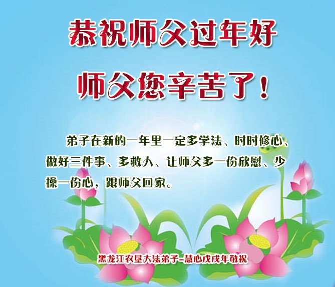 师父您好!感谢师父的慈悲苦度!在最后最后的日子里,我们一定多学法、学好法,发正念,讲真相,助师正法,多救众生,圆满随师回家。 黑龙江农垦大法弟子慧心恭祝师父过年好!师父您辛苦了!