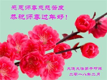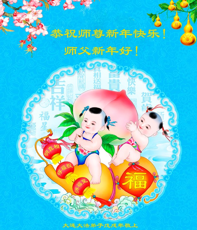 尊敬的恩师过年好!祝愿师父在新的一年里少一份操劳,多一份欣慰。我也会努力按照大法弟子的要求去做。 辽宁大连大法弟子恭祝师尊中国新年快乐!