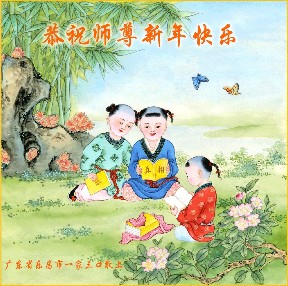 大法弟子在此给师尊拜年!师父新年好! 广东省韶关市乐昌市大法弟子一家三口恭祝师父新年好!