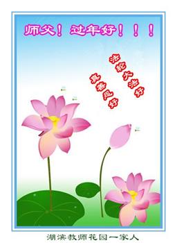 师父过年好! 师父辛苦了,我们一定要努力精進,做好三件事多救人,走好最后的路。黑龙江省海林市三人小组大法弟子敬上! 黑龙江省大法弟子恭祝师尊过年好!